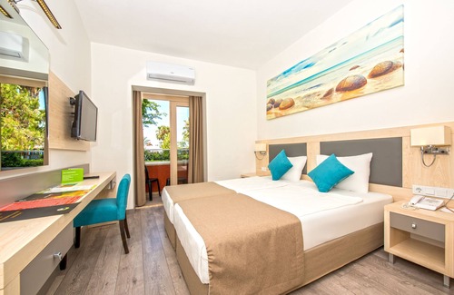 Spend the day catching some rays at AQI Pegasos Club's private sand beach, relaxing by one of the hotel's 2 outdoor swimming pools, or pampering yourself at the full-service spa.