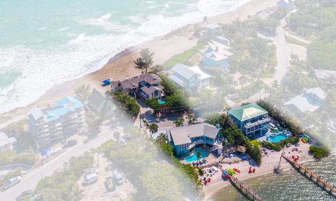 HAVE IT ALL — Live/Work/Play/Relax on your own private beach—and at your very own private luxury ocean-to-river beach property. Get away from the crowds … and get closer to those who matter the most. Less than an hour away from Palm Beach International Airport, your own 5-star oceanfront property is located in USA Today's #1 coastal small town in the USA (2024 national winner). Our town is also the national winner of the "America's Happiest Seaside City" contest (Coastal Living Magazine's Annual Award). Situated in the perfect beach town, your own beach property is a tranquil oasis yet close to shopping / restaurants / attractions. Need to connect online? Enjoy a rare luxury among vacation rentals: Gigabit-sped commercial-grade secure Wi-Fi internet so fast, you can stream 4K movies at night, and so powerful, you can work from outside, while on the beach or at the end of the dock. (Perfect for the kids' homework/homeschooling, too.)