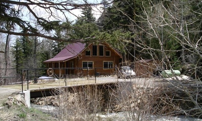 Arapaho Cliffs log cabin on Chicago Creek is nestled in a canyon with no other homes in sight yet is just 2.5 miles south of Idaho Springs, Colorado on the scenic byway to Mt. Evans and Wilderness Area. Fish for trout from the private bridge or on the banks with over 1,000' of creek frontage. Arapaho National Forest trails accessible from the back yard. Enjoy sightseeing and fine dining in historic Idaho Springs. Tour a real gold mine. Relax in the famous hot springs resort. Cabin has modern kitchen and baths and tastefully furnished in rustic western style. Quality bedding, kitchen items, etc. 1 King Bed, 1 Queen, 2 double beds and 1 pull-out double couch.