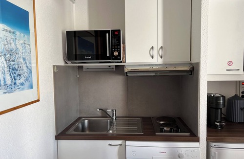 Appartement T2 de 25 m2 au 7° étage de la Résidence Fond Blanc, sortie directe sur la patinoire, à 100 m du centre, 50 m des pistes et des commerces.