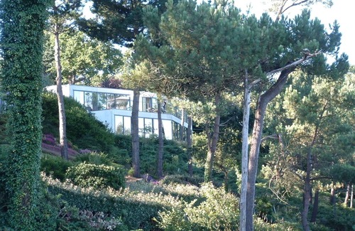 At the foot of the Belon river and on a point planted with pine trees, architect and glass and concrete house for 8 people spacious and modern of 200m2