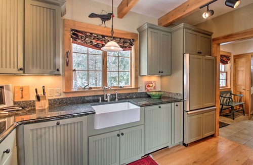 Escape to the serenity of New Hampshire’s White Mountains! This 3-bedroom, 3-bath Franconia vacation rental home offers stunning mountain views of Mt. Lafayette, Mt. Garfield, and modern comforts including a hot tub, spacious deck, stone fireplace, and gas grill. Hit the scenic hiking trails in the woods next door, snowshoe on the home’s private 2 acres, or drive into town for shopping and dining. With Cannon Mountain and Franconia Notch State Park all located nearby, year-round fun awaits!