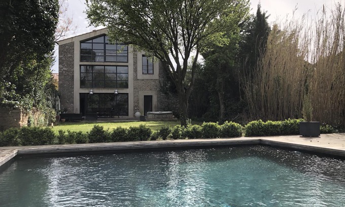 In the center of the village, without vis-à-vis, in a haven of peace, this property mixes the rustic of an old wine cellar and the modern side of the loft. Large spaces, large volumes, very pleasant to stay there. A 700 m2 garden, the spa and a concrete swimming pool are provided for holidaymakers to enjoy the sun.