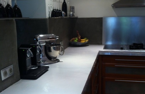 Very functional and fully equipped US kitchen (American fridge, Kitchenaid robot, Nespresso, etc.). The kitchen opens onto the dining terrace through a sliding picture window.