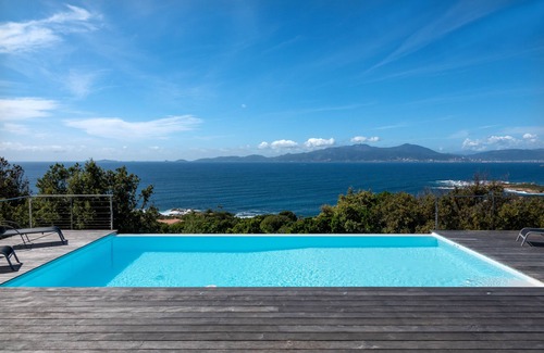Architect villa - exceptional view of the Sanguinaires & Ajaccio Gulf is located in Coti-Chiavari. Architect villa - exceptional view of the Sanguinaires & Ajaccio Gulf provides accommodation, featuring Sports/Activities, Oceanfront, Security/Safety, among other amenities. This Villa features Sports/Activities, Oceanfront, Security/Safety, to make your stay a comfortable one.
