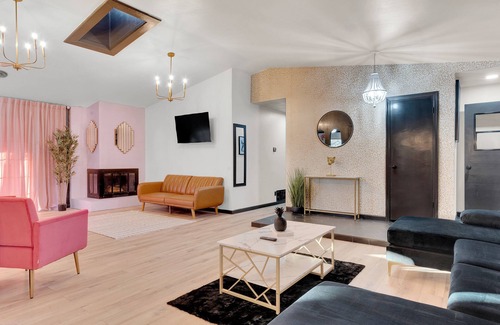 Amplify Ardmore presents a unique and memorable vacation experience! Enjoy relaxing in the indoor hot tub with a private room with sofa bed, playing pool in the game room that has 4 beds, and immersing yourself in the exciting modern safari theme throughout the home. Book now to have a one-of-a-kind getaway, photo spot, birthday weekend, romantic weekend, or family staycation!