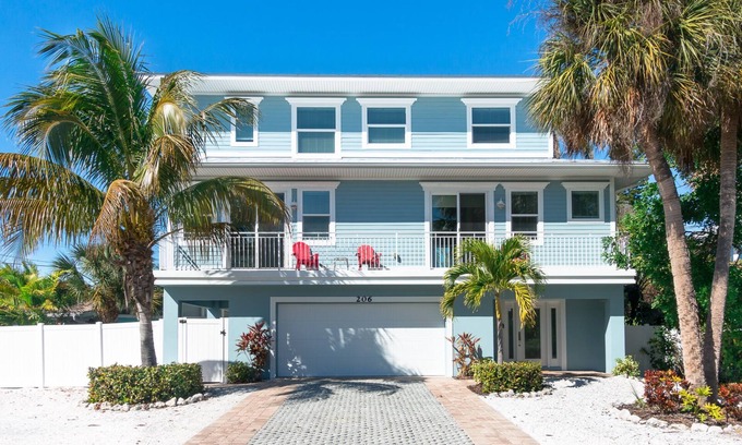 ARECA COVE - A bright and wonderful 4 bedroom/ 3.5 bath home just a 3-minute walk away from an astonishing white sand beach. With a heated pool in tropical and private surroundings, a covered patio by the pool area and multiple balconies this home offers a relaxing time on this beautiful island. This lovely new beach home features spacious bedrooms, a fully stocked kitchen, cable TV and high-speed wireless internet for your entertainment. A Trolley Stop just 1 minute away from the home lets you hop on the free Island Trolley to explore beautiful Anna Maria Island.