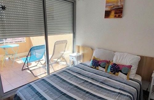 Offering a bar, Argelès 50 m plage, vue mer features accommodations in Argelès-sur-Mer. With inner courtyard views, this accommodation offers a patio. The apartment provides an outdoor swimming pool with a pool bar and free Wifi. Opening onto a balcony with pool views, the air-conditioned apartment consists of 2 bedrooms. Providing a terrace with sea views, this apartment also offers a flat-screen TV, a well-equipped kitchen with a dishwasher, an oven, and a microwave, as well as 1 bathroom with a shower and a hair dryer. The property has an outdoor dining area. Guests can make the most of the warm weather with the property's barbecue facilities. Guests at the apartment will be able to enjoy activities in and around Argelès-sur-Mer, like cycling and walking tours. Outdoor play equipment is also available for guests at Argelès 50 m plage, vue mer. Center Beach is a 2-minute walk from the accommodation, while Collioure Royal Castle is 4.6 miles away. Perpignan - Rivesaltes Airport is 21 miles from the property.