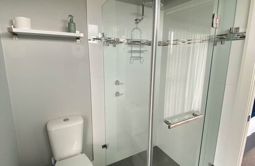 The cottage comprises a spacious combined kitchen living and dining area as well as two bedrooms, each with its own ensuite. Bedroom one has a queen bed, sitting chair and walk in robe. The second bedroom has two single beds and a built-in robe.