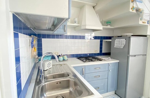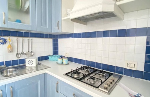 The living room, bright and spacious, is adorned with marine decorations and soothing colors that will make you feel immediately at ease. The fully equipped kitchen invites you to prepare delicious dishes using the best local products, while the dining table welcomes you for pleasant family meals.