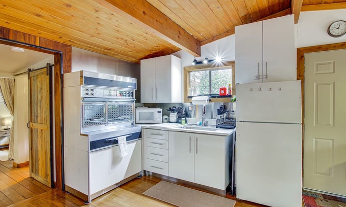 Come and enjoy the beauty of nature at this charming 1-bed, 1-bath vacation rental in Arlington, WA! Ideal for small families or groups of friends, this creek-side cabin features a well-equipped kitchen, modern furnishings, a hot tub, and outdoor games. When you’re not relaxing on-site, hike the many trails at North Cascades National Park or cast your line in the Stillaguamish or Sauk Rivers. After your adventures, get cozy by the fireplace and stream your favorite movie on the projector screen.