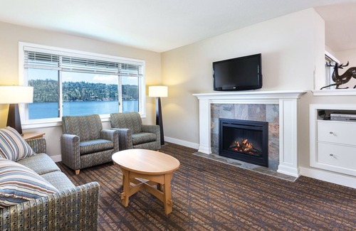 Along with spacious, well equipped suites and a beautiful setting on the shores of Lake Coeur d'Alene, these comfortable resort suites offer a convenient selection of amenities. This 100% smoke-free resort has a swimming area in the onsite lake or guests can take a dip in the indoor swimming pool. Enjoy the scenic grounds or play a game of volleyball on the outdoor court. Take advantage of in-room washer and dryer to cut down on your baggage and use the shared computer with internet to stay connected (fee).