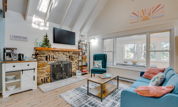 INDOOR LIVING: 2 Smart TVs w/ cable, board games, ceiling fans, electric heat, gas fireplace, dining table, kid-friendly dishware, breakfast bar, books