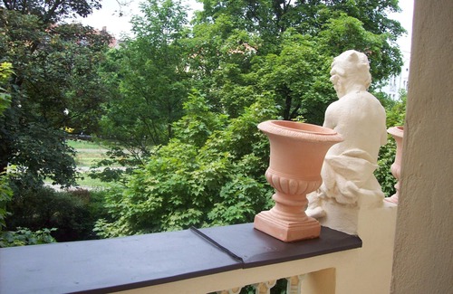 The apartment has a balcony, looking to a historic square, surrounded by lovely old buildings and a very grand school. Next to 3 parks, only blocks from the tram stop, metro line, large grocery store-- and many charming local shops, cafes and restaurants.