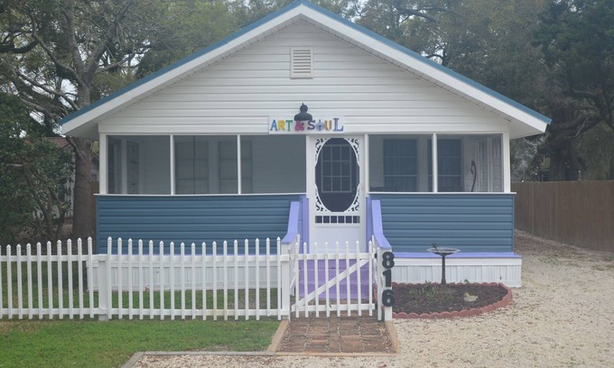 Art & Soul Vintage Cottage, fully remodeled and minutes from the Beach! is located in Dauphin Island. Art & Soul Vintage Cottage, fully remodeled and minutes from the Beach! provides accommodation, featuring Ocean View, Security/Safety, Guest Services, among other amenities. This Cottage features Ocean View, Security/Safety, Guest Services, to make your stay a comfortable one.