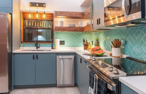 Prepare a delicious meal in the custom-designed kitchen stocked with all the essentials and gather with the whole crew at the rustic live edge dinning table (seats ten). Two units means two kitchens & dinning rooms too!