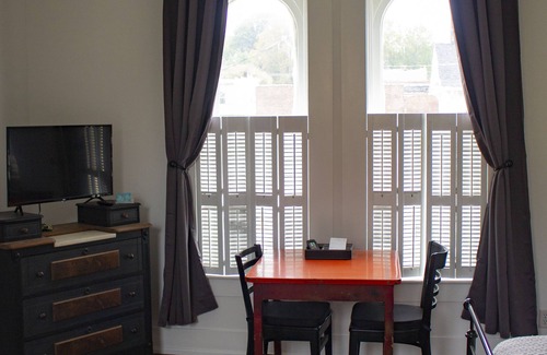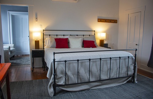 Art on High provides cozy, unique lodging on the second floor of our art center. We paid attention to details: comfortable beds, high-quality linens, original art, smart televisions, hand-painted furniture, private baths, and access to a kitchen and sitting room downstairs. Breakfast is provided in a self-serve, continental format. Our offerings include bagels, muffins, oatmeal, yogurt, fresh fruit, coffee, juice, and tea. The menu changes daily. Evening snacks are available. Art on High is situated in downtown Paris, KY, within walking distance of the Farmer's Market, Library, retail shops and restaurants, a micro-brewery, and a bourbon distillery. Lexington, KY, and the Kentucky Horse Park are a short drive away. *7% KY sales tax & 3% local transient room tax applied at checkout