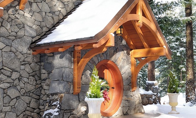Artist and owner inspired cottage, featured in magazines and YouTube, is situated on 27 beautiful acres in Oregon's Columbia gorge and wine country. Dragonfly knoll is a custom built cottage by the owner and in collaboration with architects Archer and Buchanan, inspired by JRR Tolkien. Cottage is made of local basalt boulder and structural timber framing. Beautiful custom detailing throughout. Guests get to rent the entire home on 27 acres of private pristine land.