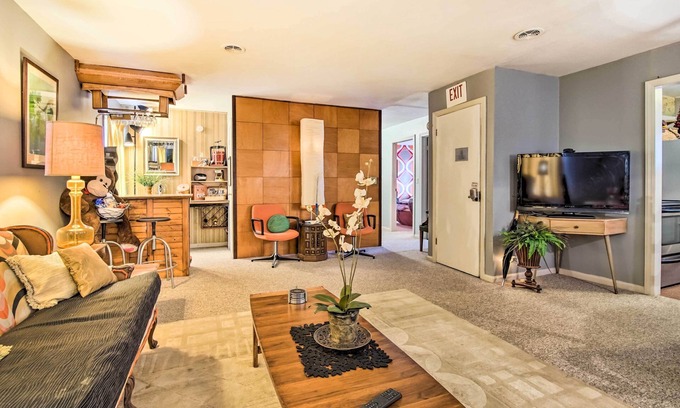 Calling all Chiefs and Royals fans to this mid-century modern 3-bedroom, 1-bath apartment in Independence! Equipped with a wet bar, board games, and a TV in every room, this vacation rental is the perfect place to unwind between sightseeing in downtown KC. If you feel like venturing out, you can explore a variety of parks, shops, and museums within minutes of this home base. To catch up on R&R, lounge in the hammock, fire up the grill for a backyard BBQ, or roast marshmallows in the fire pit!
