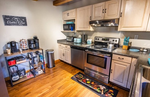 Ascension is a single level cabin with 3 bedrooms and two bathrooms. Our kitchen is fully supplied for your cooking, baking or grilling needs. Our coffee bar has several options for your morning brew, and there’s a great coffee shop 5 minutes from the cabin. Relax on the swing on the front porch or enjoy our outdoor amenities on our rear deck and large backyard. We have foosball, Pac-man and streaming TV for indoor entertainment. The cabin has a gas-powered whole-home generator as a backup in case of power outages.