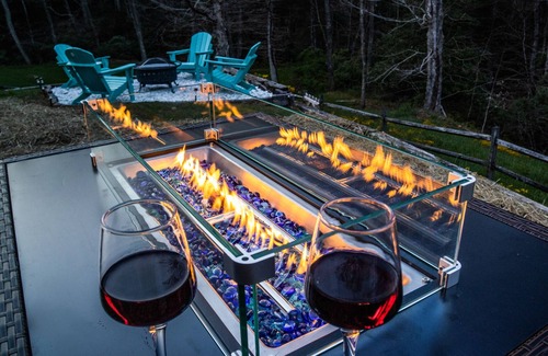 Ascension Cabin is a log home on 1 acre of land overlooking a small stream with wooded views five minutes from Summersville Lake, with New River Gorge a short drive down the highway. The cabin has a traditional feel with a comfy gas burning fireplace, plus modern amenities like high-speed internet and smart TVs. Outside is an elevated deck with grill and outdoor dining, plus a new hot tub, lounge chairs and your choice of a wood-burning fire pit or gas fire table.