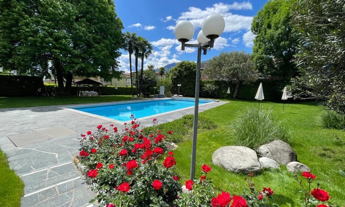 Ascona: Sabrina Apt.238 is located in Ascona, just a 17-minute walk from Golfclub Patriziale Ascona and 1.6 miles from Piazza Grande Locarno. This property offers a heated pool, free Wifi, and free private parking. Swiss Miniatur is 29 miles from the apartment. Featuring a balcony with mountain views, this apartment also includes a flat-screen TV, a well-equipped kitchenette with an oven, a fridge, and a stovetop, as well as 1 bathroom with a a bath or shower. The property has an outdoor dining area. Guests can relax in the garden at the property. Lugano Station is 25 miles from the apartment, while Lugano Exhibition Center is 26 miles from the property.