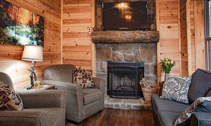 Best-rates for the South Bloomingville cabin starts from $452 per night with includes Air Conditioner, Parking, TV, Fireplace/Heating, Breakfast, Child Friendly, Pet Friendly, Security/Safety, Bedding/Linens, Hot Tub, Internet, Kitchen StayAndPlay offers fully equipped golf villas, golf hotels, golf resorts, luxury golf cabins, and exclusive golf retreats, making it easier than ever to find your perfect golf escape — ideal for families, peaceful getaways, or pet-friendly retreats with the whole crew.