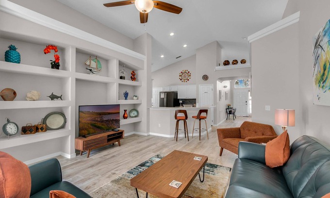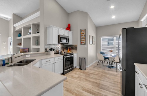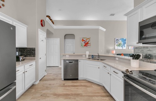 Ashland Palms is a contemporary and spacious 4 bedroom, 3 bathroom pool home. All areas have been upgraded with new flooring, furniture, appliances, quartz countertops and cabinets providing a comfortably stylish accommodation that will meet all of your vacation needs.