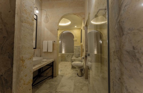 Asmalı Konak Cave Suites offers 24 accommodations with indoor private hot tubs and minibars. Each accommodation is individually furnished and decorated. 32-inch LCD televisions come with premium satellite channels. Bathrooms include separate bathtubs and showers, bathrobes, slippers, and bidets.
