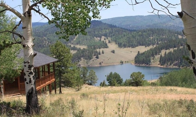 Aspen Lakehouse is a stunning, custom-built Colorado home. Skagway Reservoir is walking distance from the house and is a great trout fishing lake and excellent for canoeing or small boats. Aspen Lakehouse is the perfect place to relax, or if you prefer, there are a multitude of activities in the area from scenic byways such as Phantom Canyon Road (old tram railroad for gold miners), Shelf Road (old stagecoach route), Gold Camp Road and High Park Road, to area hiking, mountain biking, horseback riding, white water rafting, gold mine tours, golf, Cripple Creek and Victor Narrow Gauge Railroad, Florissant Fossil Beds National Monument, Mueller State Park, Pikes Peak and Pikes Peak Cog Railroad, Cave of the Winds, and much more. There is convenient shopping at Woodland Park, Colorado which is approximately 30 miles away and quaint nearby gold mining towns of Victor and Cripple Creek to explore.