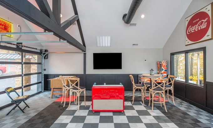 Aspen-style lakefront retreat house with hot tub, game room is located in Sparta Township. Aspen-style lakefront retreat house with hot tub, game room provides accommodation, featuring Air Conditioner, Bedding/Linens, Child Friendly, among other amenities. This House features Air Conditioner, Bedding/Linens, Child Friendly, to make your stay a comfortable one.