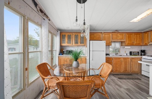 Welcome to Assateague Pointe 254, located within the private gated community of Assateague Pointe. This beautifully furnished two-bedroom double-wide home sits on a stocked fishing pond and offers all the comforts of home, including a full kitchen, two TVs, free WiFi, and central A/C. The community provides something for the entire family, with amenities such as two large outdoor pools, a recreation room, a fishing pier into the bay, stocked fishing ponds, complimentary paddle boats, a basketball half court, playgrounds, and picnic areas. Conveniently located just minutes from the beaches of Assateague Island National Park and the Ocean City beach and boardwalk, this home is ideal for a coastal getaway. Occupancy is limited to six guests. This is a non-smoking property, and pets are not permitted. Please note: sheets, towels, paper products, and cleaning supplies are not provided. A linen package, including sheets and towels, is available to rent for an additional charge.