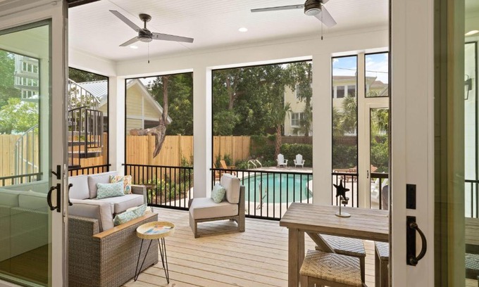 Astin Cottage - 4221Seventh Street offers accommodations in Saint Simons Island, a 1-minute walk from East Beach. This property offers a private pool, free Wifi, and free private parking. The accommodation offers a 24-hour front desk. The vacation home features 1 bedroom, a fully equipped kitchen with a dishwasher and an oven, a washing machine, and 5 bathrooms with a hair dryer. Towels and bed linen are offered in the vacation home. The property has an outdoor dining area. The nearest airport is Brunswick Golden Isles Airport, 14 miles from Astin Cottage - 4221Seventh Street.