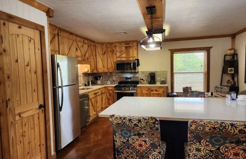 Kick back and relax in our chill barndominum that backs up to Lake of the Arbuckles.