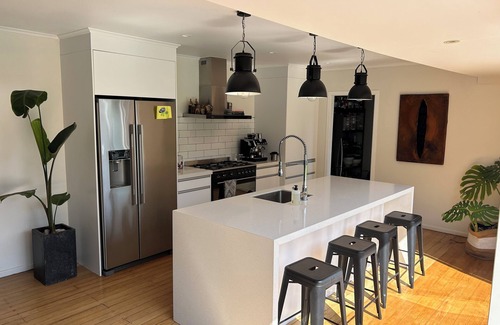 Welcoming, cozy home situated in a quiet beachside town, just 30 minutes drive from Mount Maunganui and a 5-10 minute stroll from the beach/cafe and legendary fish and chip shop. Enjoy all the essentials, plus a spacious outdoor area perfect for kids to play or for relaxing on the sun-soaked deck. Exceptional outdoor area with an oversized seated table. Also, a hot outdoor shower and toilet. The home features large comfortable beds including a king, super king, and a Californian King.