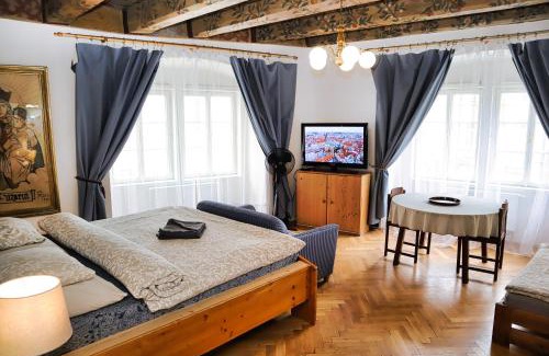 At the Blue Lion & Parking Assistance provides accommodations within 0.7 miles of the center of Prague, with free Wifi and a kitchen with a dishwasher, an oven, and a microwave. Among the various facilities are a terrace and a shared lounge. The accommodation features a shared kitchen, luggage storage space, and currency exchange for guests. At the apartment complex, every unit is fitted with a wardrobe. There's a private bathroom with walk-in shower in some units, along with slippers, a hair dryer, and free toiletries. At the apartment complex, all units are equipped with bed linen and towels. There is an on-site traditional restaurant, coffee shop, and bar. For guests with children, the apartment offers a children's playground. A bicycle rental service is available at At the Blue Lion & Parking Assistance, while hiking can be enjoyed nearby. Popular points of interest near the accommodation include Prague Castle, St. Vitus Cathedral, and Charles Bridge. Vaclav Havel Prague Airport is 7.5 miles away.