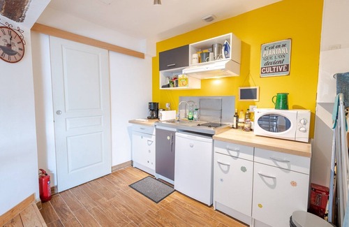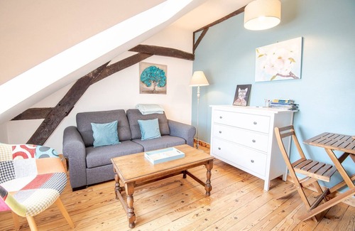Comfortable 2-room apartment, located in the heart of the city center with a breathtaking view of the Château d'Amboise! It consists of an entrance with a lounge area with TV, Wifi and a sofa. A fitted and fully equipped open kitchen. The apartment has a pretty bedroom with a 140 double bed and a bathroom with shower and separate WC.