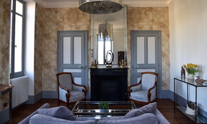 The rented apartment combines respect for the old, old materials, modern equipment, collectibles, old furniture and design. Arty atmosphere 200 m from the ramparts of Beaune. The equipped kitchen will satisfy lovers of the Burgundy terroir who will benefit from the market in the town halls. The sleeping area has two large bedrooms and one bedroom with a desk. The living room is built around a black marble fireplace and has a circa 1880 stucco ceiling.
