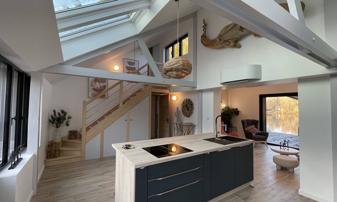 An ideal setting for fishermen and walkers, it offers you 4 harmoniously decorated bedrooms, 2 bathrooms, a living room, a space open kitchen, 100m² of terrace with views of the Seine and garden, a Deck on the edge of the water.