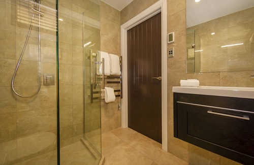 While you're here, you can enjoy all the comforts of home and more, including a rainfall showerhead and a refrigerator, as well as free WiFi and a Smart TV. Other amenities include Egyptian cotton sheets, premium bedding, towels, and bathrobes.