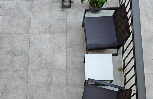 A cozy private terrace at the entrance, perfect for morning coffee or an evening glass of wine.