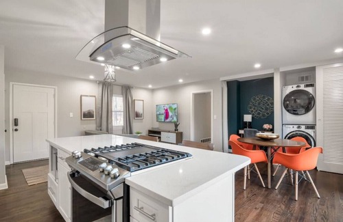 When staying here, the entire home is yours to use. Washer and dryer are in the home for your use during your stay. Fully equipped for the kitchen on for those that want to cook when away from home.
