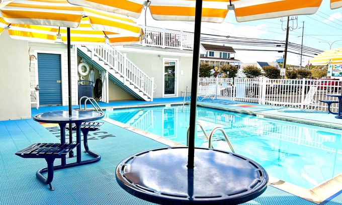 Beach fun in seasonal outdoor pool, near Dewey Beach Parasail