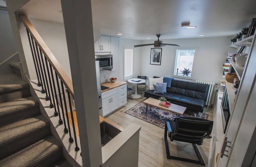 Brand new light and airy 1 bedroom, 2-story loft style apartment in one of the loveliest neighborhoods in Minneapolis. We call it our Tiny House, but its cool design makes it feel amazingly spacious! Within an easy walk of parks, lakes, and bike and walking paths, it sleeps 3 adults or 2 adults and 1-2 children. There is a 2 night minimum stay. Love shopping? The Mall of America is a 10-minutes away. The MSP main terminal is 12–15-minutes away. We're 2 blocks from a main bus line, too.