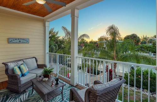 Each side of this combined Duplex features an open-concept coastal living and dining space, with balconies overlooking the pool area and amazing waterfront views. Our Keys Beach House has a total of 4 primary suites (Yes... 4 king beds) & 4 guest rooms. Two of the guest rooms feature Bunk Beds (Full and twin size bunks)... great for the kids to share. The other two guest rooms feature queen beds.