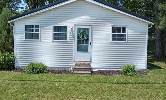 This newly renovated cottage has just been added for rentals. It is in Edinboro PA and only 1 1/2 blocks to the Lake. You will have access to the entire cottage. In the summer enjoy the guarded beach, playground, boating, and fishing. We have a firepit to enjoy at night and we supply all the firewood. There are 3 bedrooms. The first bedroom has 1 Queen size bed. The 2nd Bedroom has a bunk bed with a double size mattress on the bottom and a single on the top. The 3rd bedroom also has a bunk bed that has a double size mattress on the bottom and a single on top. We have a Washer/Dryer in the cottage with all the supplies. We have Cable TV and DVD player with a ton of movies for you to choose from. We also have wireless internet. We do not have central air conditioning but have a portable air conditioner to keep things cool. We also have either a ceiling or portable fan in each room.