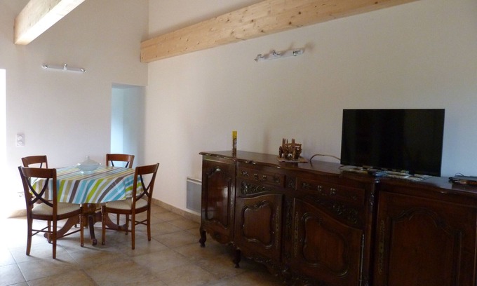 Fully renovated studio, equipped with an independent kitchen, a bathroom with shower and toilet and a large main room with high ceilings. The studio is located on the heights of Lévie in a house typical of the region (garden level on the entrance side of the studio).