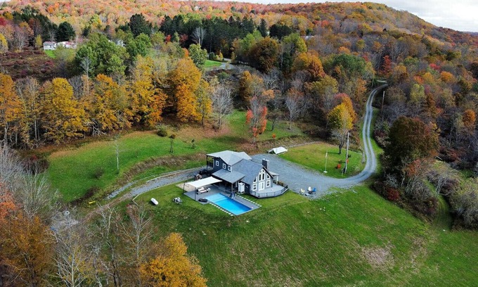 Au Bon Orchard - Catskills Mountain Views/Private Heated Pool and Jacuzzi has 3 Bedrooms , 2 Bathrooms, and max occupancy of 9 people. The minimum rental for this property is 1 nights, but this can change depending on the season you plan on staying. Previous guests have given good rated it, and VRBO labeled it a top-rated Ski Chalet because of the excellent services rendered by the owner or manager of this Ski Chalet, and has consistently provided great experiences for their guests. Most families or guests that use it recommend it to their friends and some of them are repeat guests. Ski Chalet has a friendly neighborhood, and the Parksville has interesting places to visit. If you want to learn more about the Ski Chalet in Parksville, such as places to visit and things to do nearby, you can check below to learn more.