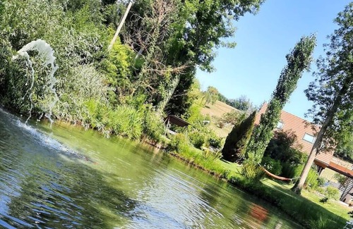 Dans la maison où se situe la chambre,vous pourrez y partager l'accès à la cuisine,le salon,la salle de bain et les toilettes. Une deuxième chambre est locative aussi.Comme les autres voyageurs,vous avez accès à tout le jardin avec son bassin, vous pourrez profiter également des fauteuils et de la table, de la balancelle et du hamac qui sont à disposition.
