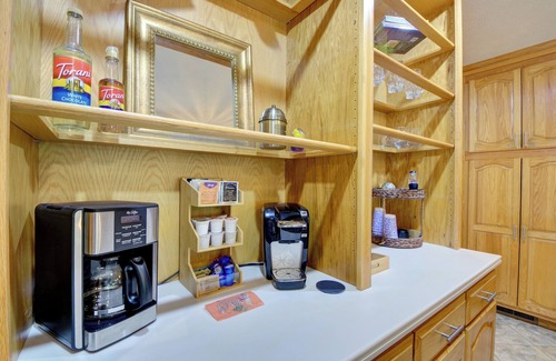 KITCHEN - You will enjoy cooking in the large, fully stocked kitchen. Coffee bar with Keurig and drip coffee maker and hot water kettle. Tea bags, ground coffee, Keurig pods, flavored syrups and sweetener provided.